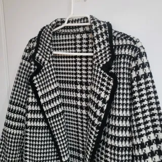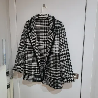 Americana o blazer con un estampado clásico de pata de gallo en blanco y negro. Ideal para un look elegante. - Diseño de cuadros. - Cuello solapa. Se recoge en benimaclet Si compráis más cosas hago precio