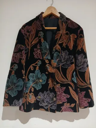 Americana vintage con un llamativo estampado floral. - Diseño de terciopelo. - Cierre de botones dorados. - Cuello solapa.