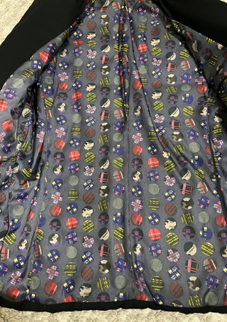 Chaqueta tipo americana de color negro con un llamativo forro interior estampado. - Cierre de botones. - Bolsillos frontales. - Cuello de solapa.
