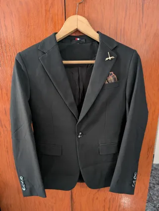 Americana de vestir Tommy Hilfiger con un diseño de rayas verticales. Es una talla M grande, una L real - Color negro. - Cierre de botones. - Bolsillo en el pecho con detalle de logo. - Puños con botones.