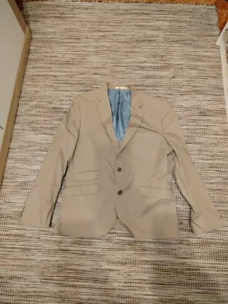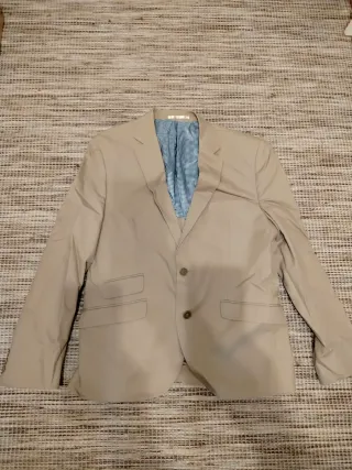 Americana de vestir para hombre en color beige. Un clásico versátil para cualquier ocasión. - Cierre de dos botones. - Bolsillos frontales con solapa. - Forro interior a cuadros.