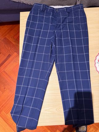 Pantalón de vestir de Zara con un diseño de cuadros clásico. - Color azul marino con líneas finas. - Corte recto. - Dos bolsillos traseros.