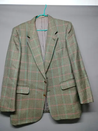Americana con un diseño de cuadros finos en tonos verde y azul. Un clásico que aporta estilo. Talla 52. En buen estado. Lleva un tiempo guardada y necesitará limpieza.