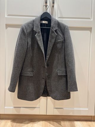 Americana de Zara con un diseño de cuadros en tonos azules grises . Ideal para un look elegante. - Diseño de cuadros. - Cierre de dos botones. - Bolsillos frontales.