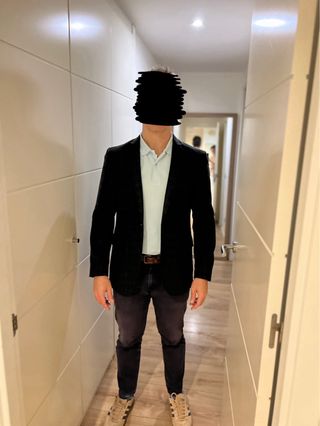 Elegante blazer de la marca ETM by Etiem. El modelo de la foto mide 175 y pesa unos 75 kg