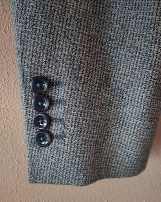Americana vintage italiana 100% lana – Talla L Americana de hombre vintage, de origen italiano (Bovone – Tortona), confeccionada en 100% lana de alta calidad. Tejido clásico príncipe de Gales / cuadros, muy elegante y atemporal. ✔ Talla L ✔ Corte clásico, estructura firme ✔ Lana natural: abriga pero transpira ✔ Forro interior en perfecto estado ✔ Ideal para looks formales o casuales (jeans + camisa, o más arreglado) Prenda muy cuidada, sin manchas ni desperfectos. Difícil de encontrar hoy en día con esta calidad.