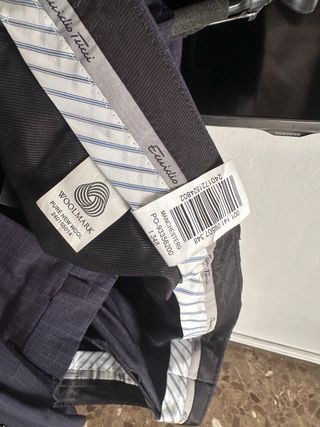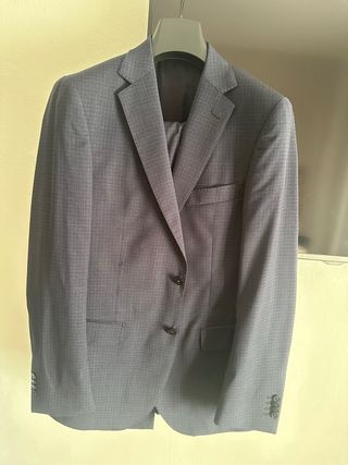 Traje juvenil de la marca Mango con un diseño de cuadros sutil en tono azul marino. Ideal para ocasiones formales o eventos especiales. Por lo demás está perfecto. Ideal para una graduación o similar. - Diseño de cuadros discretos. - Corte moderno y juvenil. - Tejido de tacto suave. Tiene un arreglo de un rasgado en la pierna, hecho por profesional, apenas se nota.