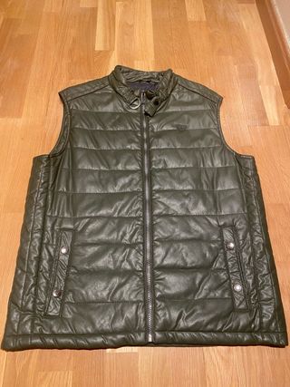 Vendo Chaleco de piel de ante verde, talla XL, en muy buen estado tal y conforme se ve en las fotos.