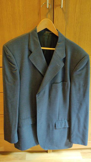 Como nuevo, azul hacia oscuro, bonito (en fotos no se aprecia bien el color), pantalón de pata recta o ancha. Marca Emidio Tucci para el Corte Inglés. Lleva lana en su composición. Buena calidad. Cintura de pantalón 92. Talla del conjunto L -M