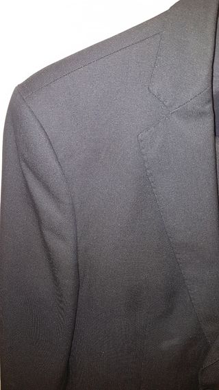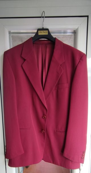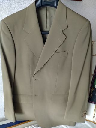 Usado una vez en una boda. La chaqueta mide; hombros 49 cm, largo 75 cm, sisa 62 cm, manga 63 cm. En su interior tiene 3 bolsillos. El pantalón mide; cintura 48 cm, largo 97 cm y posibilidad de alargarlo un bajo de 7 cm.