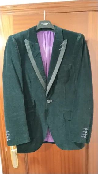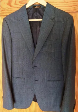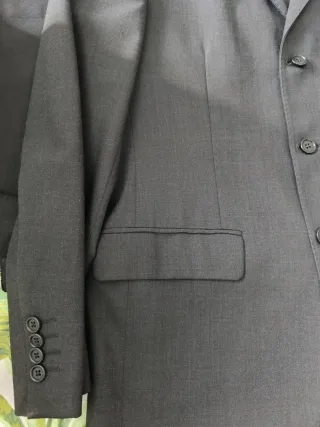 Conjunto americana y pantalón, no se vende por separado. En perfecto estado. Comprado hace 2 años y apenas usado. Lo vendo porque se me ha quedado pequeño. Slim Fit. Lavado en tintorería después del último uso.