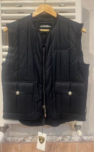 Chaleco acolchado de la marca Lamborghini. Diseño moderno y funcional. - Cierre de cremallera frontal. - Dos bolsillos frontales con botón. - Cuello redondo.
