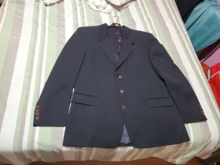 Americana de vestir para hombre. - Color azul marino - Diseño clásico con solapa. - Bolsillos frontales. Nueva. Sin estrenar. Co serva la etiqueta. La última foto es para ver el grabado. Parece que la americana sea gris, pero es de color azul (oscuro).
