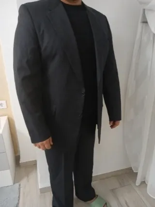 Traje de chaqueta y pantalón en color negro, usado una sola vez. Se encuentra en perfecto estado. - Chaqueta con cierre de dos botones. - Pantalón de vestir.
