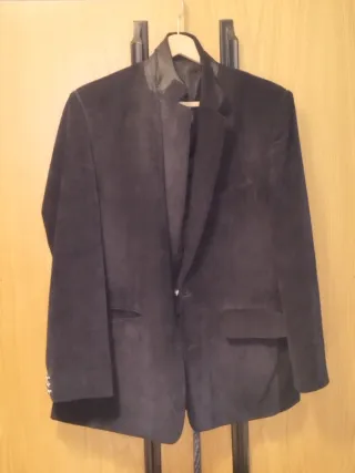 Traje clásico de Zara Man en color Negro con detalle en azul en cuello y manga tal y como se ve en las fotografías. Puede venderse junto o separado. Zara Basic. El corte es básico no es Slim. Puesto en dos ocasiones. Pantalón talla 44, el dobladillo está cogido para una persona de altura aproximada de 1,75. Americana/Blazer/chaqueta anchita talla 54.