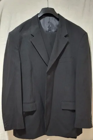 Elegante traje de chaqueta clásico con un discreto diseño de raya diplomática. Perfecto para ocasiones formales o de negocios. La chaqueta es talla 56 y el pantalón es la 48. Incluido chaleco - Chaqueta con solapa clásica. - Bolsillos frontales. - Cierre de un botón. Mensajes solo a través de este chat