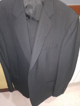 Hecho por modista para una boda pero no sé llegó a estrenar por motivos personales. Color negro con rayitas muy finas. Medidas pantalón: Cintura: 49 cm. Largo: 94 cm Chaqueta medidas: De hombro a hombro 52 cm Largo manga desde el hombro: 64cm De axila a axila: 64 cm.