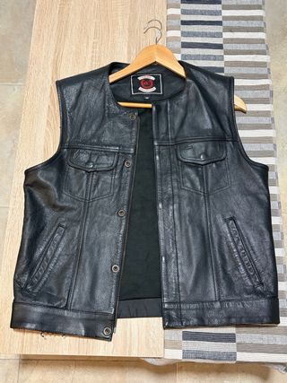 Chaleco de cuero estilo Sons of Anarchy. - Diseño inspirado en la serie. - Parches de President y Redwood Original.