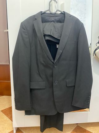 Traje de chaqueta negro. Talla 48 de chaqueta, y 40 de pantalón. Puesto sólo una vez.