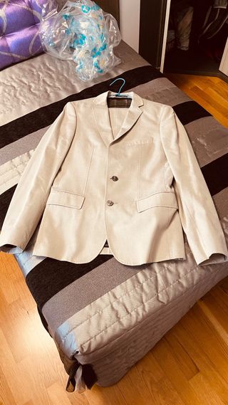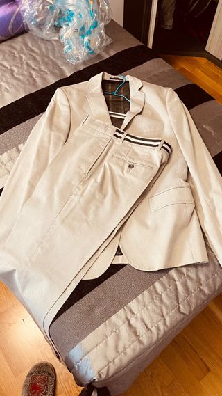 Traje entallado, perfecto para altura 1,78, color gris claro, lo quito porque se me ha quedado pequeño.