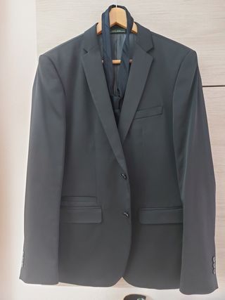 Traje azul marino de Zara. Solo se ha usado una sola vez. Es muy cómodo y elegante. Está en perfecto estado. Talla del pantalón: 38 Talla de la americana: 46
