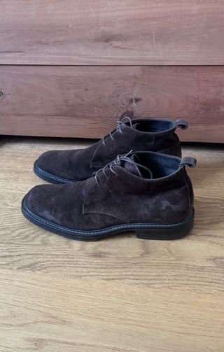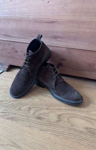 Botines de ante en color marrón, en muy buen estado. Son FLORSHEIM originales (marca americana) Talla 10 USA (44 española) pero dan buena talla de horma, ancho y largo. Hago descuentos en lotes de articulos y acepto ofertas razonables. Cualquier duda, no dudes en preguntarme.