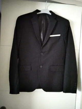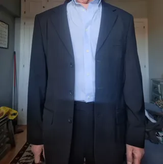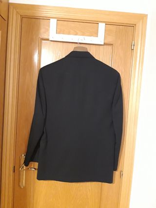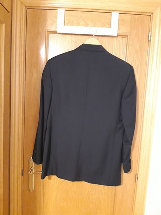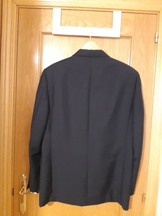 Americana de vestir en color azul marino para hombre/adolescente. Linea comfort (es suave y cómoda, y no tan rígida como otras). Puesto una sola vez. En perfecto estado. - Cierre de 2 botónes - Dos bolsillos frontales. - Puño con 2 botones. - Bolsillo interior. (En la foto se ve arrugada porque la tenía guardada). Se puede combinar con el pantalón beige que también tengo en mi perfil (como se puede ver an la foto del conjunto).