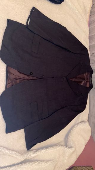 Color marron. Talla 52. 55% poliester. 45% lana. 3 botones. Abierta por detras