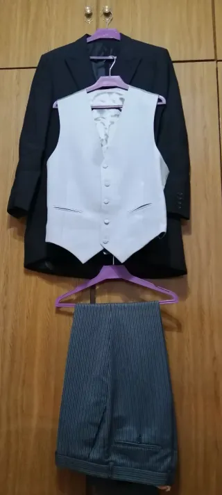 Chaqué 3 piezas negro y gris