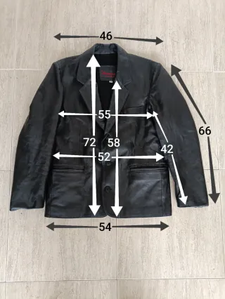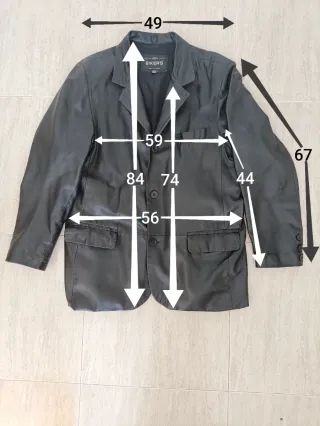 Más prendas de cuero en mi perfil. Poco usada, en muy buen estado, sin desgaste, solamente ligeros indicios de uso previo. Forro en perfecto estado. Cuero ovino de excelente calidad flexible y suave. Grosor medio. Color negro intenso. Talla entre la S y la M. El modelo mide 1,74 y pesa 82 kgs. Medidas indicadas en las fotos. Preguntar cualquier información sin compromiso.