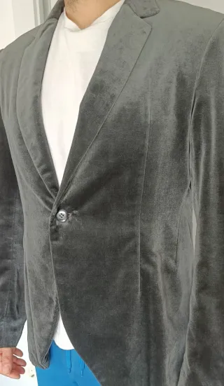 Elegante americana gris para hombre, talla M (equivalente a 48). Está en muy buen estado. Medidas: hombro 42 axila 50 manga 63 largo 75 - Corte clásico. - Dos botones. - Bolsillos funcionales.