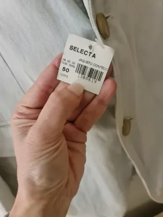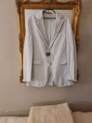 Elegante Chaqueta, americana ligera de estilo casual, mezcla de lino y algodón de la marca Etiem, talla 50. Es una prenda nueva a estrenar. Color beige azul crema Ideal para ocasiones semi-formales o climas cálidos. Preci en tienda 290€