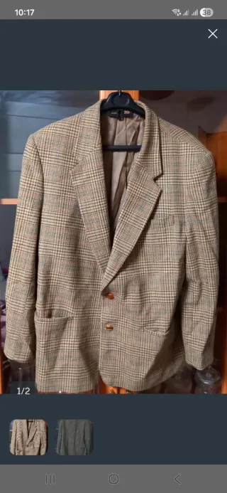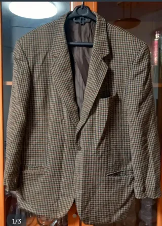 Elegante americana para hombre, confeccionada en pura lana virgen. Está en muy buen estado. - Talla: L (42-44 / 52-54) - Pura lana virgen - Color: Gris a cuadros - Tejido grueso.