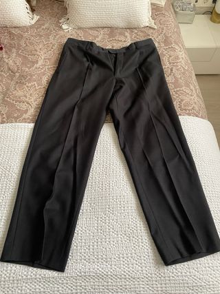 - Elegante traje de hombre, elaborado por Zara. - Color “gris marengo”, elaborado con viscoelástico y polyester. - Talla 54. - Pantalón de vestir con pinzas. - Bolsillo trasero con botón.