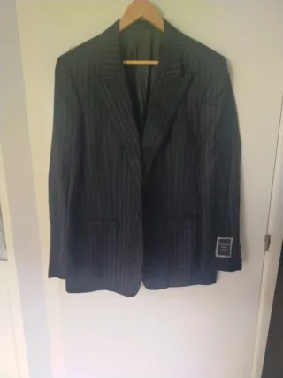 Completamente nuevo,usado una vez para una boda. azul marino con raya diplomática. Medidas en las fotos.