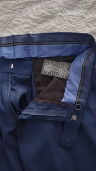 Traje de vestir para hombre como nuevo. Se compró justo antes del Covid y sólo se pudo usar en dos ocasiones. - Chaqueta de corte clásico. Talla 44 S - Pantalón a juego. Talla 38 S - Tejido de alta calidad. - Puños de 4 botones - Bolsillos interiores pequeños. - Costuras moradas interiores. Precio negociable. No duden en preguntar.