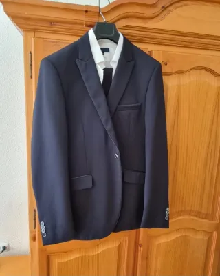 Traje de Novio con un sólo uso (día de la boda). Está como nuevo. Color azul marino Talla L. Incluye par de zapatos del número 42 y cinturón. Precio negociable.