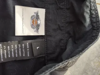Chaleco Harley-Davidson negro, talla L. Confeccionado con una mezcla de materiales para mayor comodidad y durabilidad. - Composición: 98% Algodón, 2% Spandex. - Fabricado en China.
