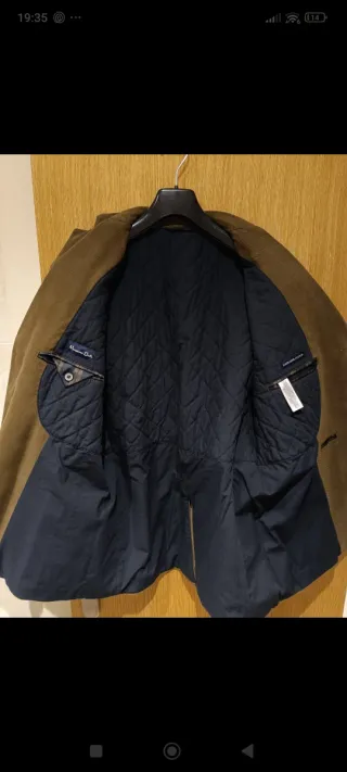 Chaqueta de vestir para hombre con diseño desmontable. - Chaqueta exterior con estampado de cuadros. - Chaleco interior acolchado. Desmontable. - Cierre de cremallera en el chaleco. - Botones en la parte frontal de la chaqueta. Está nueva sin utilizar con etiqueta