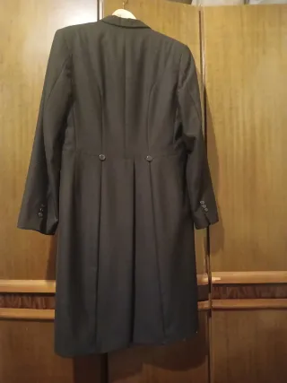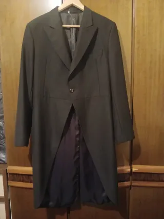 Traje de chaqué de color gris de la marca Alvaro Moreno (Incluye americana y Pantalon) - Chaqué con solapa de pico. - Pantalón a juego. - Botones en la manga. Usado solamente una vez. Talla del pantalon: 44 Talla de americana: 50