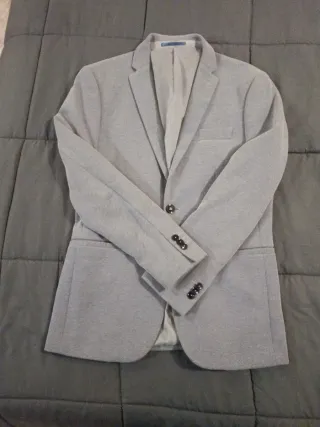 Americana de vestir en tono gris. Presenta un diseño clásico y elegante. Muy.buen estado Zara, talla L - Cierre de dos botones. - Bolsillos frontales.
