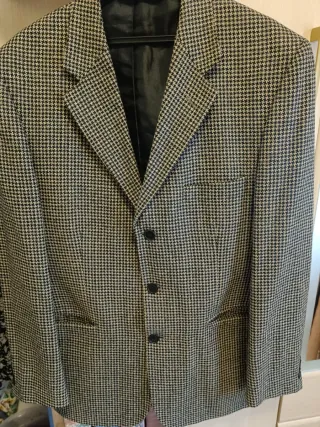 Americana de vestir con un diseño clásico y elegante. - Tejido con estampado de espiga. - Dos botones frontales. - Bolsillos de solapa. Usada pero en muy buen estado. Oferta si se compran 2 o más americanas del perfil