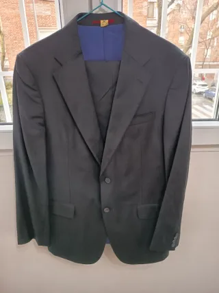 Elegante traje de Brooksfield confeccionado en Italia. - Chaqueta con solapa de muesca y de doble abertura. - Tres Botones . - Talla 50: Cintura 90cm, longitud pantalón hasta 105cm, Manga 58cm