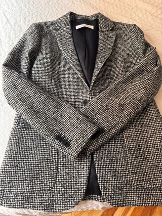 Americana de vestir de Adolfo Dominguez con un diseño clásico. - Patrón de espiga en blanco y negro. - Cierre abotonado. - Bolsillos de solapa. Precio original 210€.