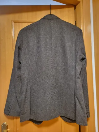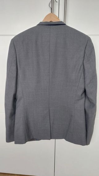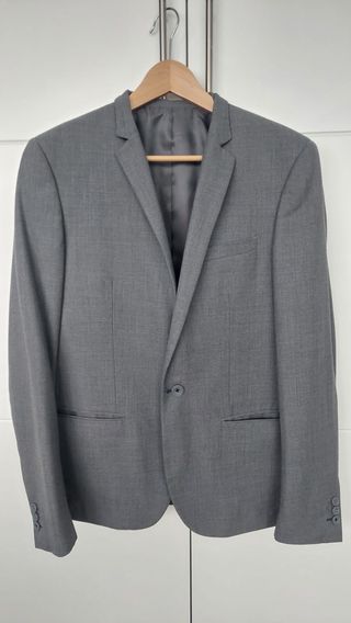 Blazer de color gris de Zara men, cuello con solapas de muesca y manga larga acabada en puño con botones. Bolsillo de vivo en pecho y bolsillos en cadera. Detalle de bolsillo interior. Bajo con aberturas en espalda. Cierre frontal de 2 botones. Talla 52