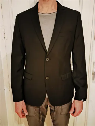 Chaqueta para hombre, elegante y versátil, juvenil, cierre chaqueta 2 botones y aberturas traseras, bolsillos frontales con solapa Muy buen estado Zara, talla 48