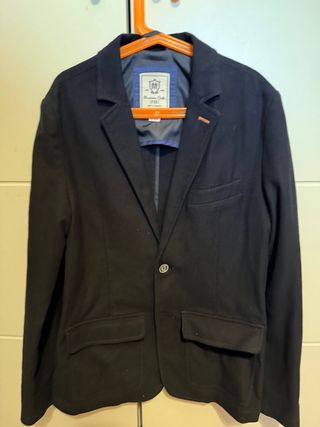Americana de vestir de la marca Roy Robson en color azul marino. Un clásico para cualquier ocasión. - Cierre de un botón. - Dos bolsillos frontales. - Cuello solapa. - Forro interior con estampado. Usada pero muy bien conservada y de muy buena calidad. Oferta si compras 2 o más americanas de mi perfil