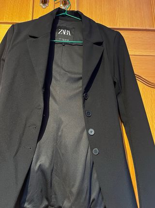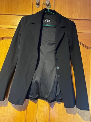 Americana elegante de Zara en color negro. - Corte entallado. - Cierre de botones. - Forro interior.
