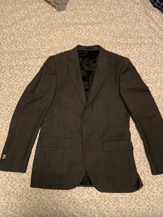Americana de vestir con un diseño moteado en tono gris. Presenta un corte clásico y elegante. - Cierre de dos botones. - Puños con tres botones. - Bolsillos frontales con solapa. Muy buen estado y de muy buena calidad. Oferta si compras 2 o más americanas de mi perfil