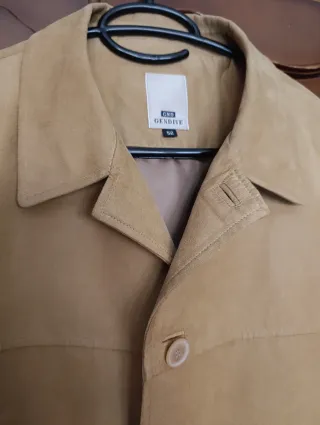 Chaqueta de ante marrón para caballero. Es una prenda elegante y cómoda, perfecta para cualquier ocasión. - Talla grande. - Estilo clásico. - Dos bolsillos delanteros.